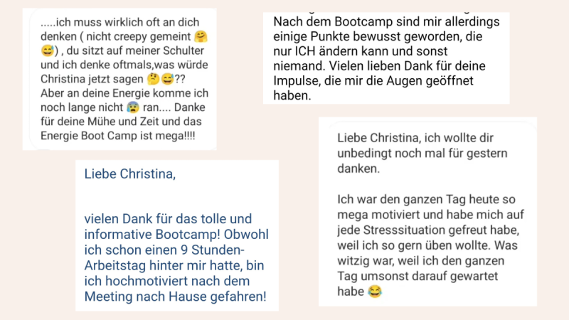 Das sagen Teilnehmerinnen über mein Bootcamp: